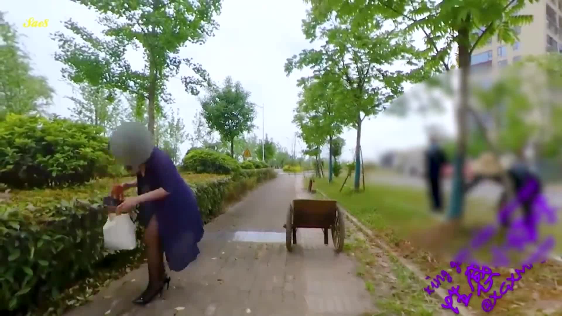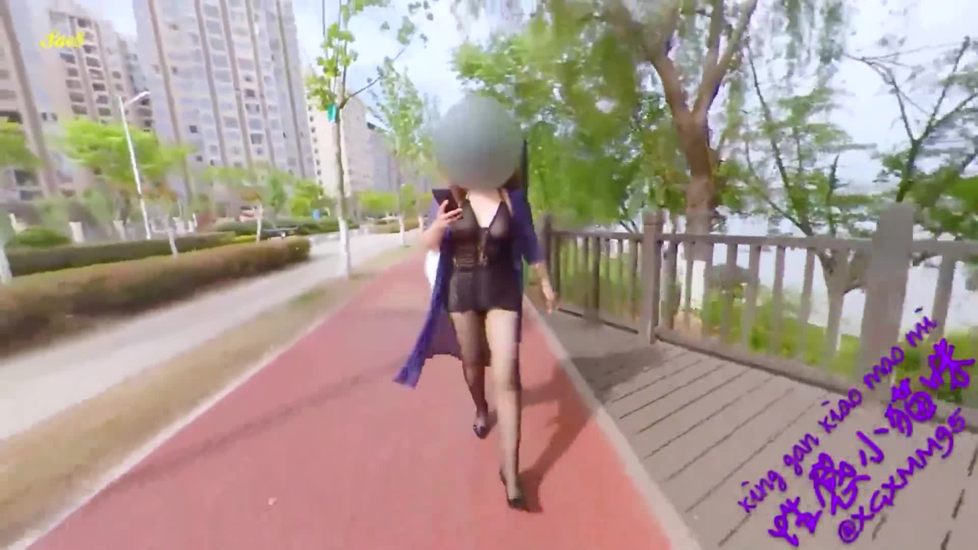 露出诱惑穿透明衣服散步露出给两个老头看