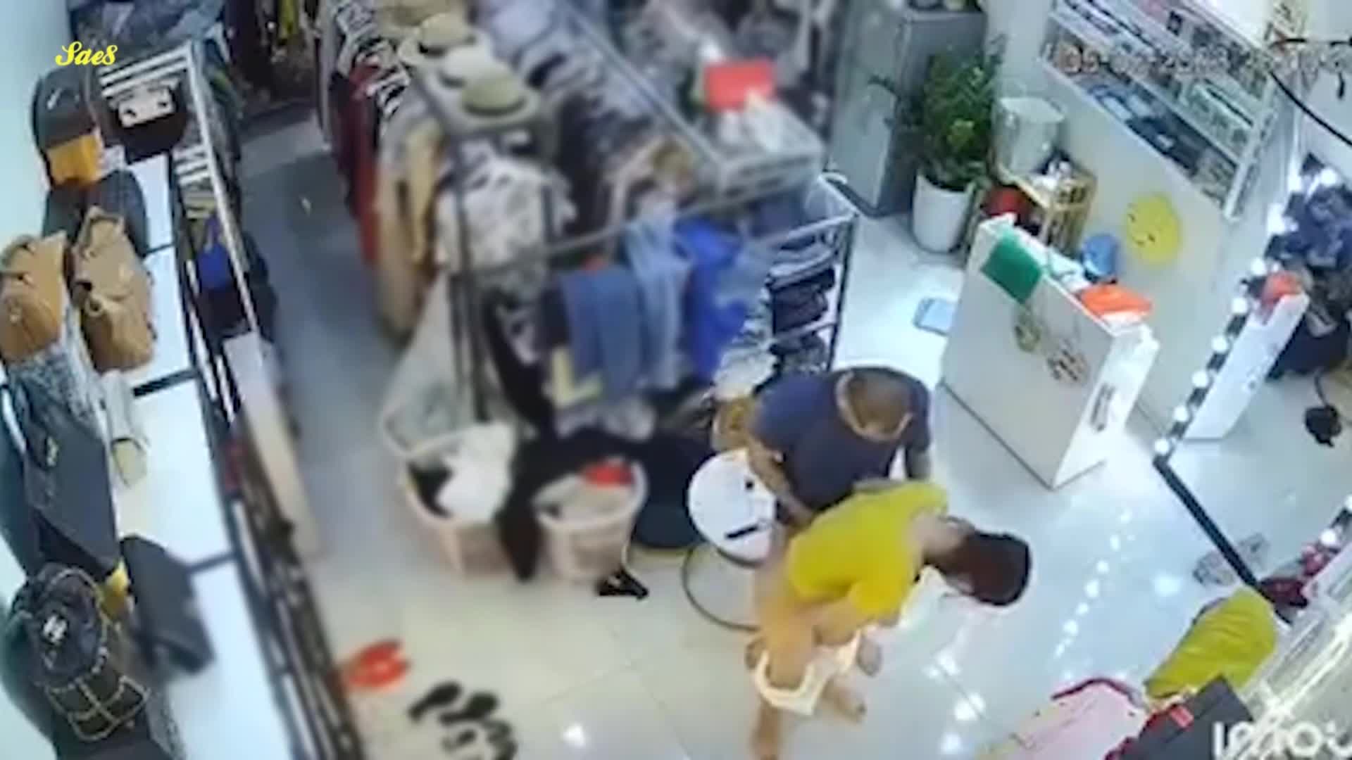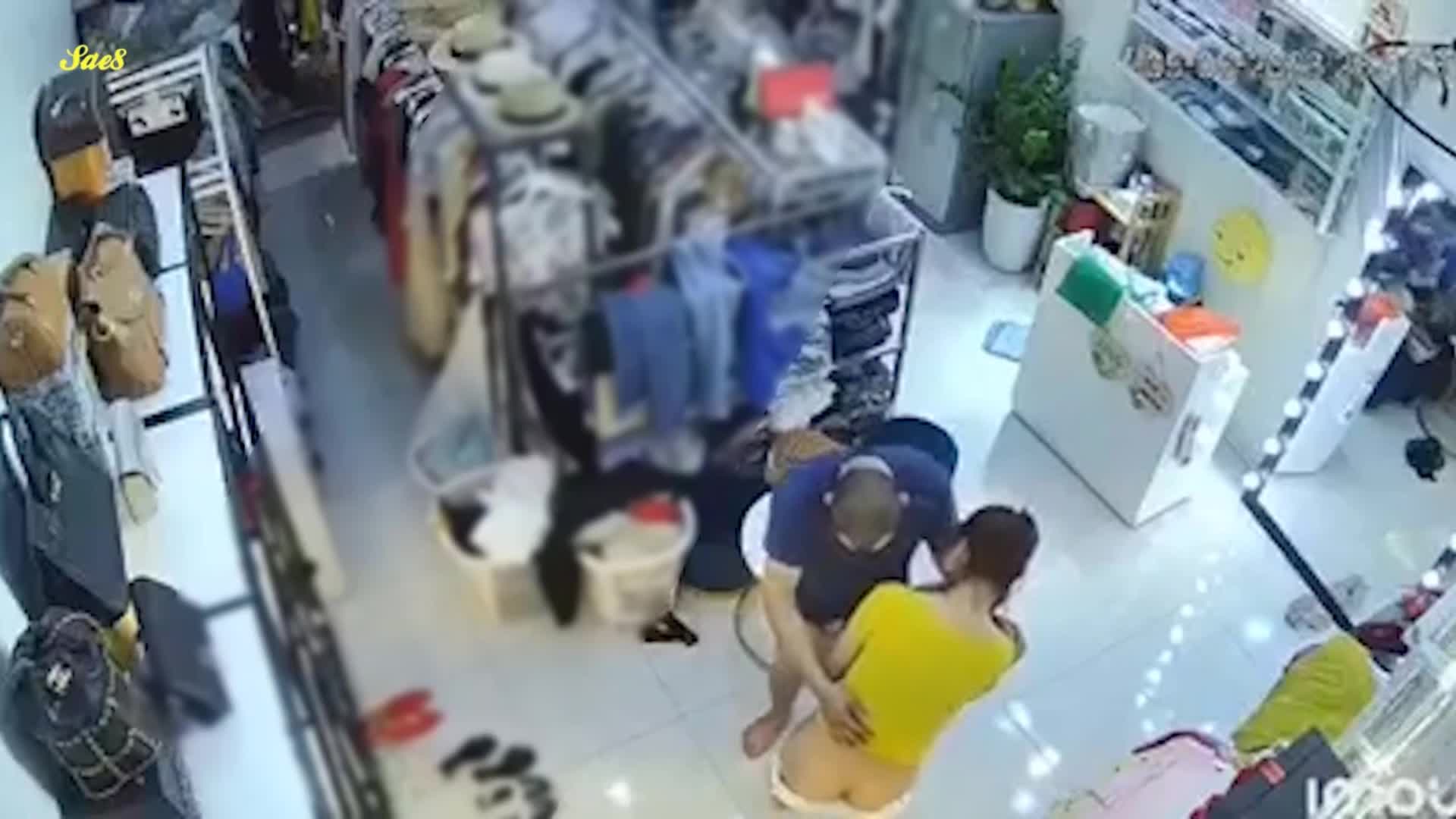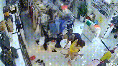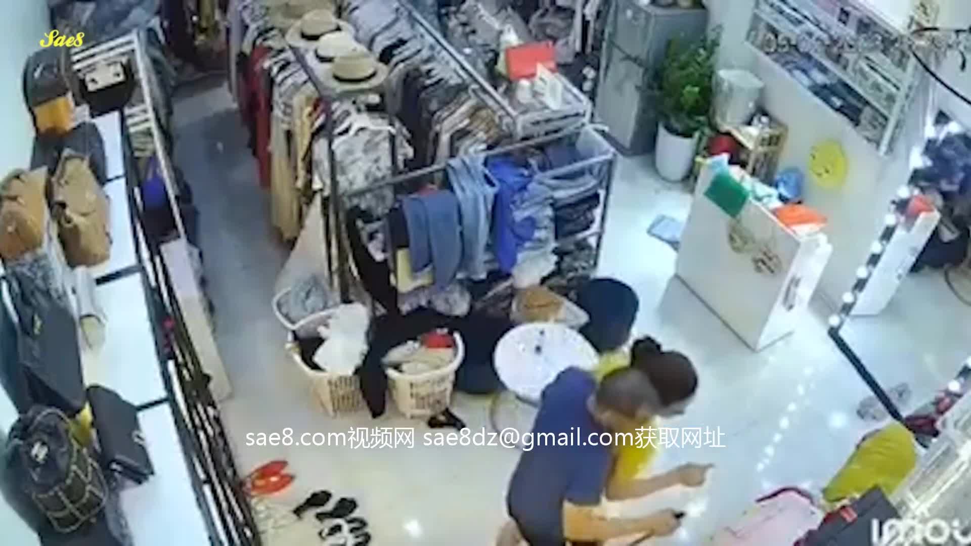 热点大瓜原版影像监控摄像头真实记录服装店美艳老板娘遭遇持刀歹徒劫色教科书式自救