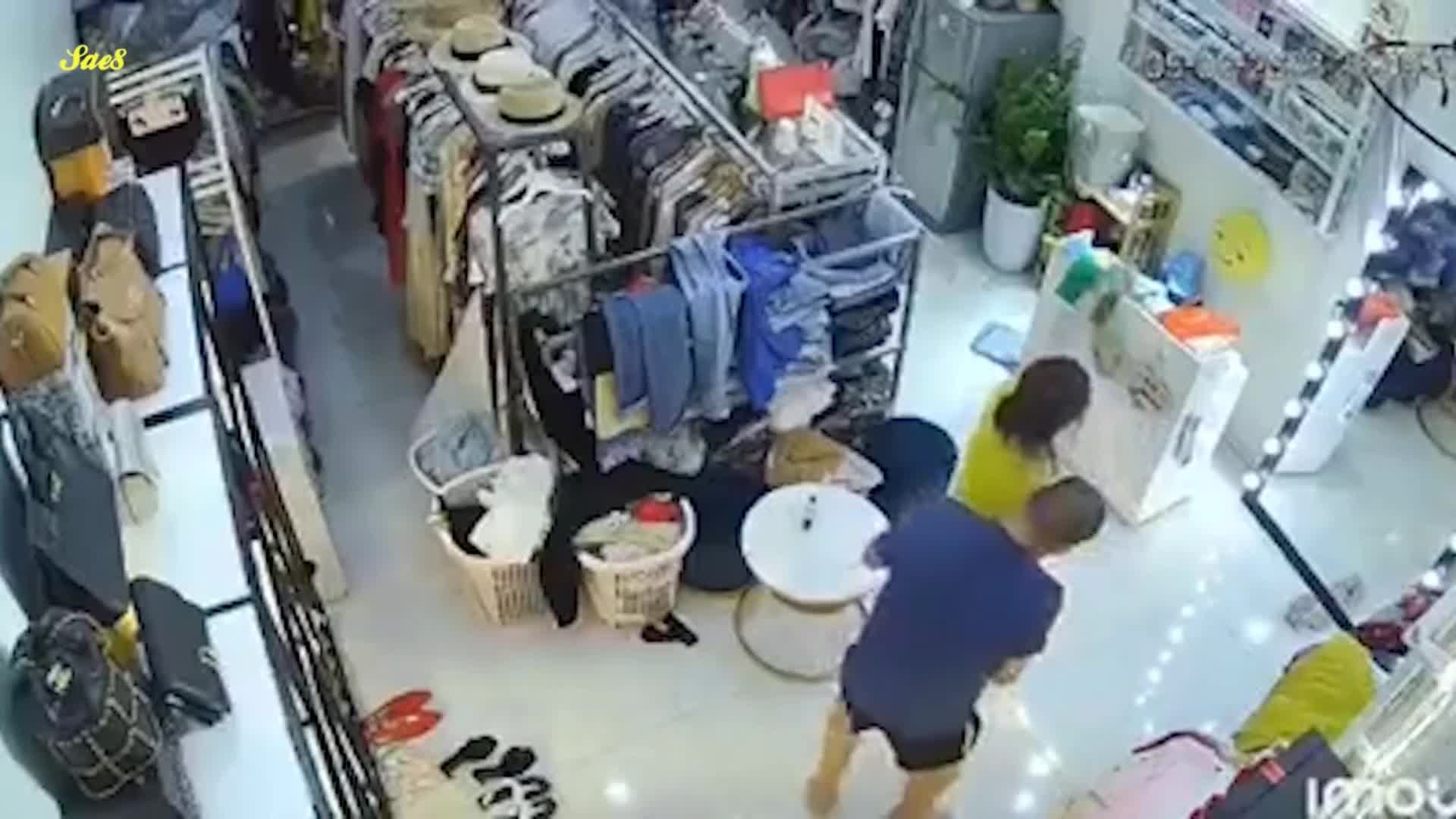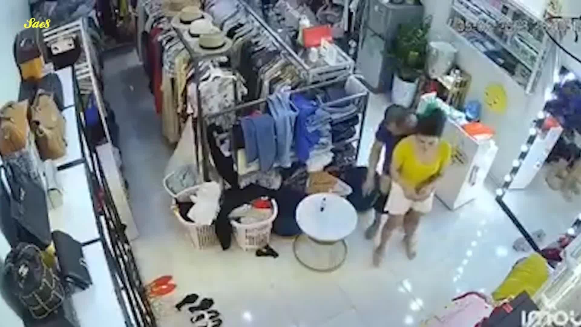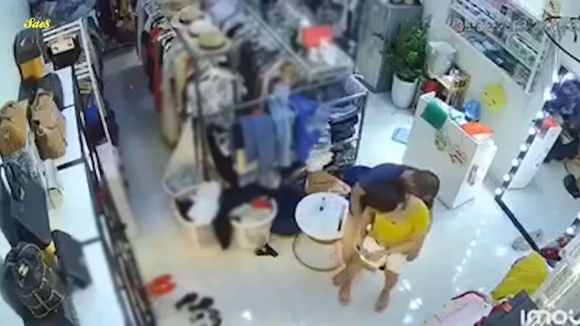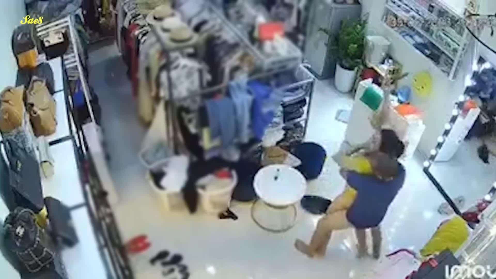 热点大瓜原版影像监控摄像头真实记录服装店美艳老板娘遭遇持刀歹徒劫色教科书式自救